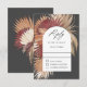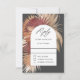 A beautiful mix of tropical dried fan palms framing your text in a popular geometric arched frame add a distinctive appeal to this wedding response card. The warm neutral colour palette is a versatile choice throughout the year and is especially lovely for summer or fall weddings. Shown here with a charcoal grey background, other colours are available. Personalize the text template with your required RSVP date.