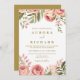 This elegant wedding invitation design features gorgeous florals on background with classic typography. This design is the perfect choice for a rustic yet elegant late summer or autumn wedding.