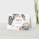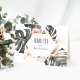 With modern boho style, this stylish tropical Thank You card has flowing Monstera leaf foliage with soft peach and white floral elements including orchids and sweetheart roses in off-white and terracotta peach. A trendy geometric triple frame in shimmering gold surrounds the text on the front of the card. Personalize this card with your name(s). The inside of the card has a sample thank you message that can be personalized with your own desired wording. You can also delete the sample inside text entirely if you wish to handwrite your thank you cards.