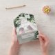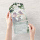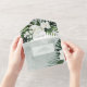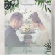 AVAILABLE WITH OR WITHOUT A QR CODE OR DINNER OPTIONS. This design features beautiful, lush tropic greenery and white florals on a soft lush green watercolor background. Personalize it with your own special photo. Perfect for the destination or beach wedding. Created by Simply Farmhouse Press.