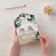 AVAILABLE WITH OR WITHOUT A QR CODE OR DINNER OPTIONS. This design features beautiful, lush tropic greenery and white florals on a soft lush green watercolor background. Personalize it with your own special photo. Perfect for the destination or beach wedding. Created by Simply Farmhouse Press.