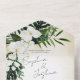 AVAILABLE WITH OR WITHOUT DINNER OPTIONS INSTEAD OF A QR CODE. This design features beautiful, lush tropic greenery and white florals on a soft sand yellow watercolor background. Change the QR code to your wedding website or any other site guests should visit. Perfect for the destination or beach wedding. Created by Simply Farmhouse Press.