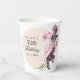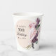 Add a memorable personal touch to a 50th birthday celebration with these custom paper cups. The theme is boho tropical floral and is fabulous! A pale rose beige round frame surrounds the text along with a beautiful pink parrot sitting atop a bouquet of tropical floral elements that include purple protea and orchids with dark berries and jungle greenery. It makes a wonderful party theme with creative and fun tropical style. All of the text can be customized, so this label can be used for any age birthday.