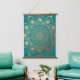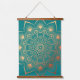 Boho Turquoise Peach Mandala Wood Topped Hanging Tapestry