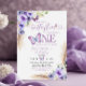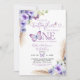 Boho Twin Purple Butterfly First Birthday Floral Invitation