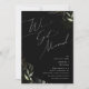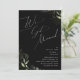 Entrez dans un monde d'enchantement avec notre faire-part de fuite romantique boho vert et or | noir, parfait pour votre évasion printanière botanique boho. Orné d'eucalyptus vert sauge et d'accents dorés, cette invitation respire l'élégance et la fantaisie moderne. Imaginez vous promener dans un jardin d'été magique, entouré des sons apaisants de la nature. Le design capture sans effort le charme rustique de l'automne avec ses teintes vert clair, évoquant la beauté de la saison qui change. Avec une touche de sophistication minimaliste et un flair bohème classique, les détails en faux foil doré brillant ajoutent une touche de glamour et de romance. Avec une atmosphère de conte de fées gracieux, cette invitation respire la classe et met en valeur la splendeur naturelle de l'automne. N'hésitez pas à nous contacter si vous avez des questions sur le design, et