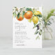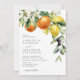 An elegant invitation for your spring summer wedding. The design features a watercolor swag of citrus fruits including lemons and oranges, with accents of white blossoms and olive branches Personalize with all of your important details include bride and groom's name, date, time, location.