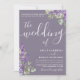 Unique dusty purple eucalyptus and Lavender wedding invitation. Original watercolor illustrations in sage green and lilac with white calligraphy. Easy to customize with your own information.