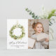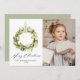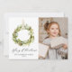 Boho Watercolor Greenery Wreath Photo Holiday Card