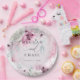 WEDDING PARTY PAPER PLATES | Rustic Elegant Watercolor Pink Poppies - shades of pink with ivory white - a collection of poppies and dahlia flowers accented with pale green eucalyptus greenery - all set on a pink watercolor splash background - easy to customize template - original design by ©WhimsicalArtwork™ for theBarefootBride ™. This is part of a complete wedding stationery suite, as well as Baby Shower, Birthday and Christening Invitations. For question or assistance please contact designer indy.designer@yahoo.com.