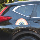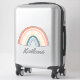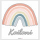 This beautiful vinyl sticker features a hand painted boho watercolor rainbow in coral, pink, gold, teal blue, and dusty blue. It contains a name template for personalization!