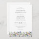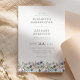 This boho wedding invitation features a bottom border of watercolor wildflowers. Personalize it with the names of the bride and groom in vintage grey typeface. Add the couple's initials on the back, encircled by a small matching watercolor wildflower wreath.