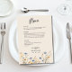 This BOHO Watercolor Wildflowers Elegant Beige Wedding Menu features beautiful blue and yellow wildflowers, menu options, optional text on the back, and modern typography. Your wedding reception guests will love having a choice of meal options at your wedding.