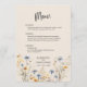 BOHO Watercolor Wildflower Elegant Beige Wedding Menu