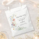 Crafted with meticulous attention to detail, the favour bag features a captivating display of lively and colourful wildflowers, reminiscent of a picturesque meadow in full bloom. The boho chic font adds a modern yet whimsical touch, harmonizing seamlessly with the overall design.