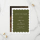 A retro stlye Boho Wavy Border Green and White Wedding Save the Date with your photo on the reverse.
