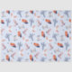 Cute boho pattern with playful western elements in Christmas style. Rose pink, blue, orange and white colours on light blue background.