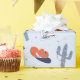 Cute boho pattern with playful western elements in Christmas style. Rose pink, blue, orange and white colours on light blue background.