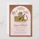 Centred within this invitation is a beautifully rendered boho western guitar, adorned with intricate sunflowers and delicate floral patterns. It serves as a symbol of the harmonious relationship between music and nature, beckoning guests to partake in a stylish celebration. Complementing the guitar are a cowgirl hat embellished with sunflowers and a pair of weathered western boots, paying homage to the untamed spirit of the wild west.