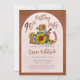 Centred within this invitation is a beautifully rendered boho western guitar, adorned with intricate sunflowers and delicate floral patterns. It serves as a symbol of the harmonious relationship between music and nature, beckoning guests to partake in a stylish celebration. Complementing the guitar are a cowgirl hat embellished with sunflowers and a pair of weathered western boots, paying homage to the untamed spirit of the wild west.