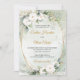Boho White roses green eucalyptus faux gold oval Invitation