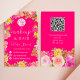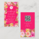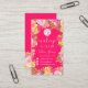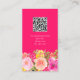 A Boho pretty wild flowers garden makeup and hair beauty business card with hand painted floral illustration in pink, yellow, peach wild meadow flowers and roses, sage green eucalyptus and greenery on editable on hot neon pink. Add your logo, social media and qr code for more info and price list.