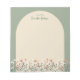 Chic boho arch notepad with wildflower floral illustration border with customizable text and name in sage green.