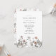 Whimsical bridal shower invitation card featuring watercolor illustration of wildflowers in pink and white. Perfect for a spring or summer celebration.