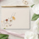 Wedding invitation envelopes are characterized by boho style, floral artwork, neutral earthy, and beige colours, with a mix of different font styles, often in different sizes, to create a unique, eclectic look that makes these invitations natural aesthetic.