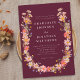 Designed by artist Catherine Sweetman, this unique wedding invitation showcases a beautifully detailed dried flower wreath in warm, earthy hues burnt orange, terracotta, burnt umber, coral, peach, brown, yellow, green, purple, and soft pink. The burgundy background adds a deep, romantic tone, while the burnt orange script enhances the natural, autumnal aesthetic.