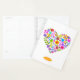 A cheerful and charming customizable day planner featuring a simple heart filled with brightly colored flowers. Get organized for the New Year! This sweet little laminated day planner is complete with fun and colorful stickers, monthly and weekly layouts and spiral spine available in your choice of accent colors. Don't forget to personalize this agenda with a name and choice of background color on front and back (this item shown in white on the front and bright pink on the back - choose your favorite color from the full rainbow to make this planner truly one of a kind!). Makes a thoughtful gift.