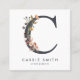 Boho Wildflower Initial C QR Code Square Business Card