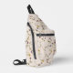 This unique sling crossbody bag has a pattern of scattered wildflowers in watercolor hues of yellow, purple and green over a neutral beige background. The look is carefree and whimsical. A text template is included to personalize this item with your monogram initials. The look is boho fresh and modern with a touch of nature-inspired outdoor charm.