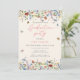 This is a delicate and whimsical graduation party invitation. The design features a colourful and bohemian field of wildflower florals in pretty shades of blue, terracotta, pink, purple and yellow. The butterflies and bees add the finishing botanical elegant touch.
