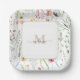 Boho Wildflowers Custom Name Monogram Paper Plate