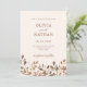 This simple and boho wedding invitation features a muted, neutral beige background and brown and terracotta autumn watercolor wildflowers, with your photo on the back framed by a matching wildflower overlay.