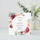 Our bohemian wedding invitation features a (not real) gold round frame with burgundy, blush flowers and greenery. Perfect for fall or winter weddings.