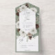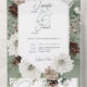 Boho Winter White Floral & Pine Green No Dinner All In One Invitation
