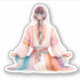 Experience the harmony and serenity of the Boho lifestyle with our unique sticker, which is a meditative woman in artistic watercolor technology. The illustration shows a woman from behind who's sitting on the floor, who's sunk into deep meditation. Her hair is decorated with beautiful flowers and delicate hair ornaments, which underscores her natural beauty and attachment to nature. She wears a flowing Boho-style dress, which charms with its lightness and playful patterns. The color range of this design includes soft lilac, turquoise, pink and orange tones that blend harmoniously and create a soothing, aesthetic effect. This exquisite design is available as stickers and is perfect for decorating notebooks, laptops, water bottles and much more. Bring a touch of Boho-Chic into your everyday life and be inspired by the tranquility of this artwork. Each sticker is made with a love for detail and an eye for quality, so you will enjoy your new favorite piece for a long time. Immerse yourself in the world of Boho aesthetics and let yourself be enchanted by the peaceful atmosphere of this meditative design.