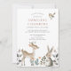 Whimsical boho simple illustrated woodland forest animals baby shower invitation, in hues of brown and green. A gender neutral style.