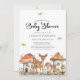 A charming Baby Shower design with smiling deers, fairy mushrooms and elegant calligraphy! You can personalize this invitation with your own details.
