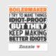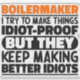 Funny Boilermaker Sayings "Boilermaker I Try To Make Things Idiot Proof But They Keep Making Better Idiots". Grab this Funny Boilermaker design as a funny gifts for an awesome mom, dad or friend.