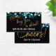 Dans une police manuscrite, les mots "Laissez-nous vous acheter un verre !" apparaissent sur le devant de ce billet d'alcool. Les mots ont été embellisés avec un effet d'or de parties scintillant faux. "Good for One Adult Beverage" est le champ modifiable dans une police Art déco blanche en bas, sur une surface noire solide dans l'image arrière - plan. De l'autre côté se trouve "Cheers" et une place modèle pour vos noms. L'image arrière - plan festive est noire avec des fusées éclairantes de bouquins floues au sommet, dans les tons turquoises, aqua, turquoise, blanc et vert. Des éclats éclatants brillent des lumières floues. N'hésitez pas à communiquer avec nous si vous avez des demandes ou avez besoin d'aide customisée. ///// nous vous achetons un verre, bon pour une boisson adulte, billet de bar pour une boisson alcoolisée, billet bar pour la réception de mariage, billets de bar pour la fête de mariage, typographie des billets de bar festifs, police de caractères manuscrits, modifier votre nom et votre message, bon de boisson artistique, design unique, police de script élaborée, écriture calligraphie, noir, turquoise et blanc sur noir, boisson métallique tix //// de Melody Watson pour Paper Muserie.