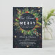 Black and White String Lights and Holly Christmas Floral Wreath - Manger, boire et être joyeux Calligraphie Script Noël Fête Invitation. Black White Red & Green Holly String Lights Seasonal Holiday Family Reunion Christmas Party Card.