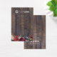 Aquarelle peinte fleurie et verdure botanique en rouge bordeaux, rose vif et bleu marine, sur arrière - plan de bois marron rustique, avec logo personnalisé, coordonnées et tag médias sociaux, chic et élégant, grandes cartes d'oreille rustique avec logo.