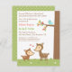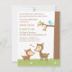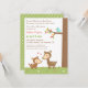 Un joli baby shower à thème animal de bois à célébrer avec maman à être! Cette invitation vient avec une mignonne mère et chevreuils jumelés, un doe et fawn. Des tulipes rouges et des fleurs de marguerites blanches décorent le pâté de gazon. Un oiseau bleu est perché sur la branche de l'arbre avec des feuilles colorés. La page inverse est motif pois. Personnalisez facilement avec les détails de votre fête.