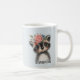 Un joli raton laveur avec un arrangement floral sur la tête. L'arrière - plan est bleu avec des points. monogramme facultatif