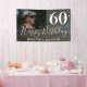 Bannière photo Rustic Wood 60th Birthday Party. Grand signe pour la fête du 60ème anniversaire avec une photo personnalisée et un texte en script blanc tendance avec un nom. L'arrière - plan est de texture bois foncé. Personnalisez le panneau avec votre photo, votre nom et votre numéro d'âge.