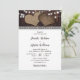 Ce faire-part de mariage rustique romantique avec deux coeurs de burlap contre un arrière - plan en bois de grange orné de dentelle fleurie blanche et de lampes à cordes est parfait pour inviter vos invités à votre mariage rustique de campagne/grange.