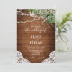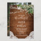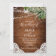 Entrez dans un monde de charme rustique avec notre faire-part de mariage magnifiquement artisanale. Dans un décor de bois rustique, ce design se caractérise par un agencement délicat de feuilles de verdure aquarelle, doucement éclairé par des lampes à cordes au sommet pour une touche enchanteresse. Le fond de la carte est orné d'une magnifique illustration de dentelle blanche, renforçant son attrait vintage. À l'intérieur, la combinaison harmonieuse de script moderne et de police serif classique déplie élégamment vos détails mariages, créant une invitation aussi mémorable que votre journée spéciale.